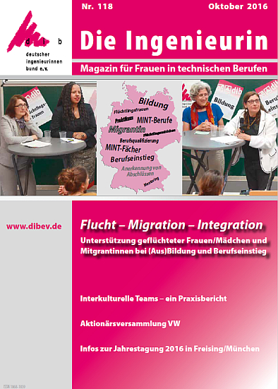 Kürzlich erschien die Ausgabe 118, 3/2016 der Fachzeitschrift "Die Ingenierin" vom deutscher ingenieurinnenbund (dib) mit einem Beitrag zum Projekt IMAGE mit dem Titel Qualifizierte Zugewanderte als Gewinn für die deutsche Wirtschaft und Gesellschaft